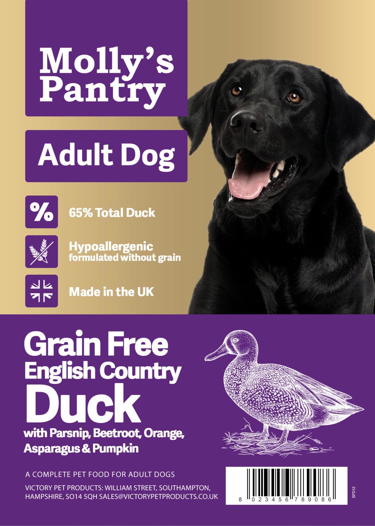 65% Duck (35% Freshly Prepared English Country Duck, 22% Dried Duck, 5% Duck Fat & 3% Duck Stock), Sweet Potato, Beans, Beet Pulp, Dried Superfood Blend* (Including Parsnip, Beetroot, Orange, Asparagus, Pumpkin), Omega 3 Supplement, Minerals, Fructooligosaccharides (FOS, 192 mg/kg), Mannanoligosaccharides (MOS, 48 mg/kg), Olive Extract(0.01%) *Each equivalent to4% Fresh Ingredients